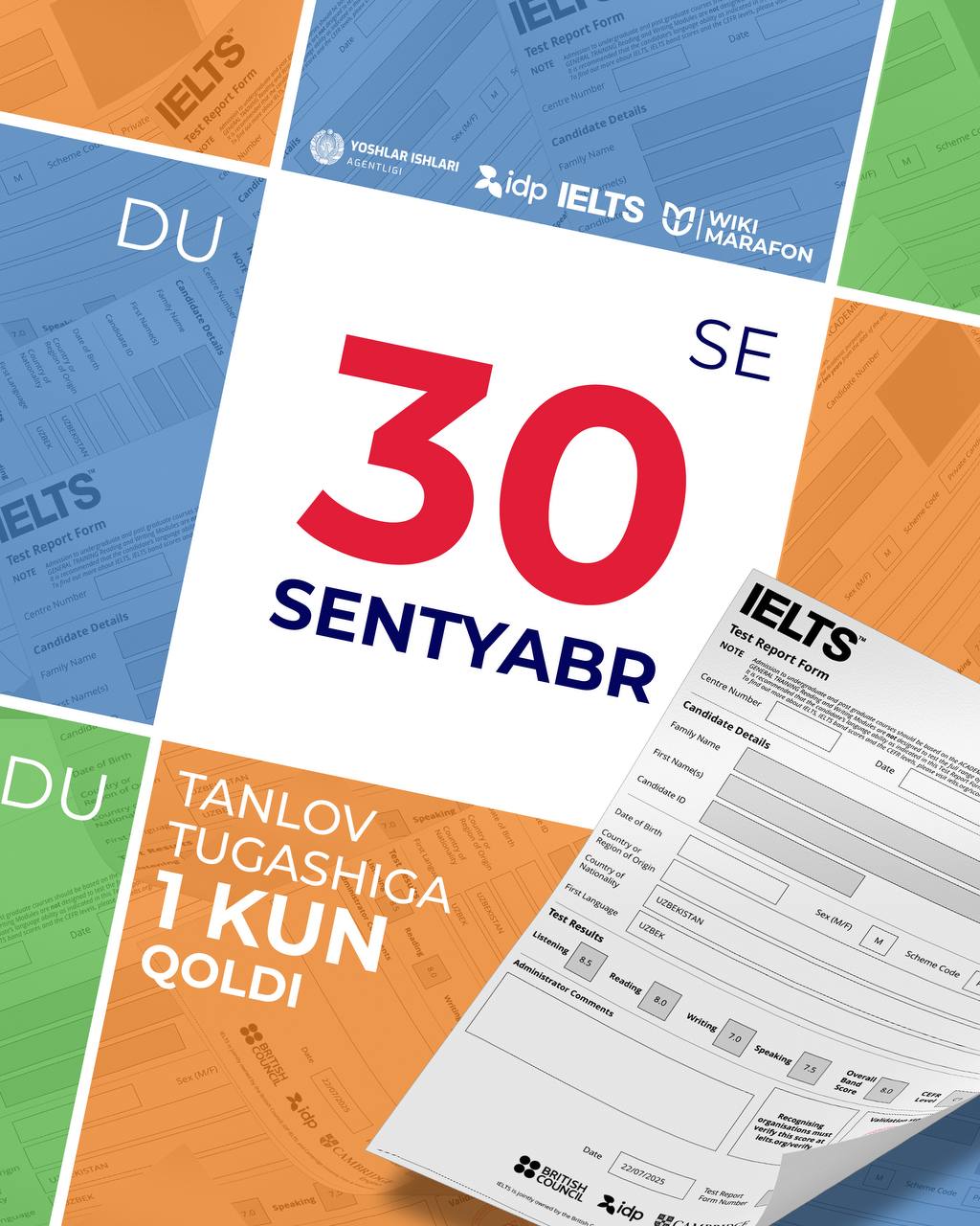 ⚡️"WikiIELTS"da qatnashayotgan ishtirokchilar diqqatiga: tanlovning yakunlashiga sanoqli soatlar qoldi. Tarjima matnlaringiz tayyor bo‘lsa, uni tezroq bot orqali bizga jo‘nating.